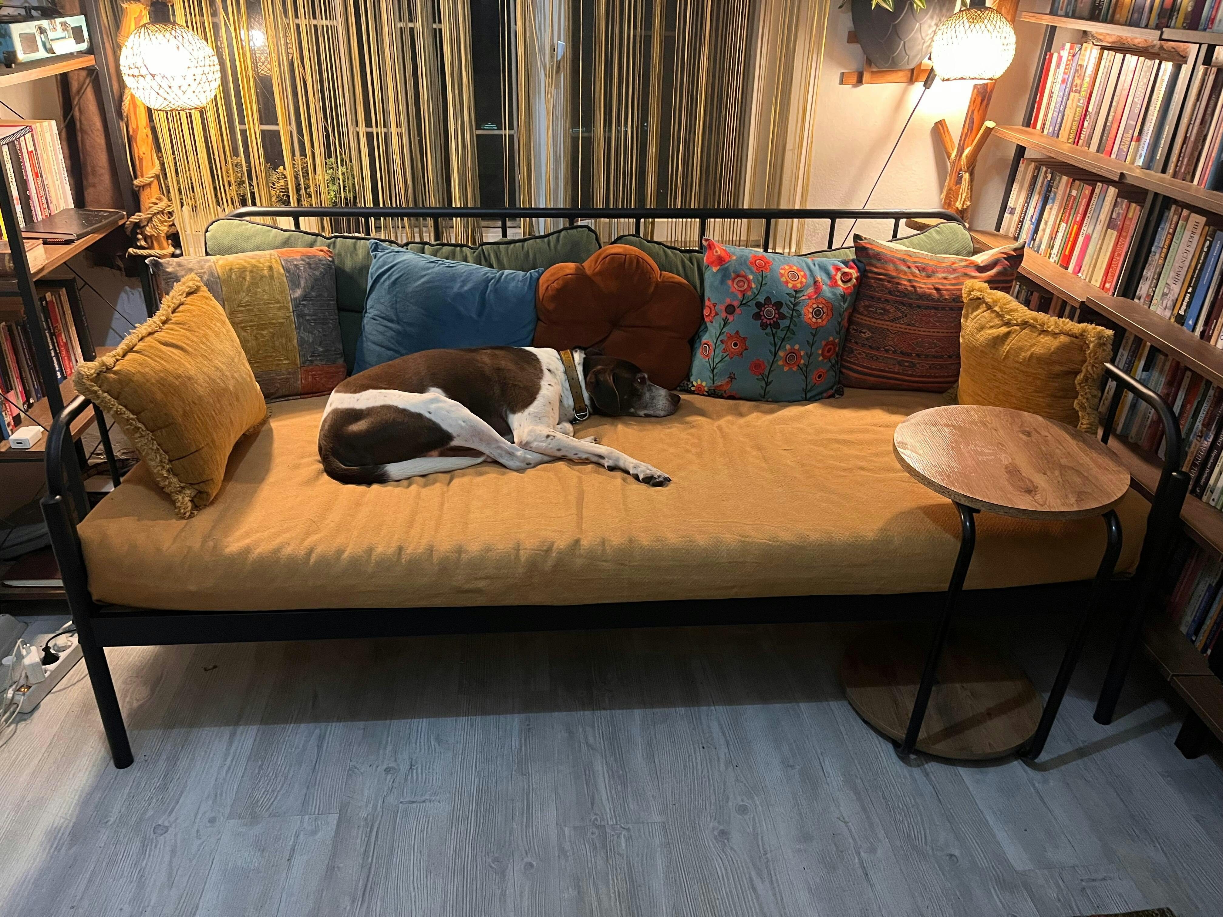 Sofia Metal Sedir, hem konforlu bir oturma alanı hem de tek kişilik yatak olarak kullanılabilen şık ve fonksiyonel bir üründür.